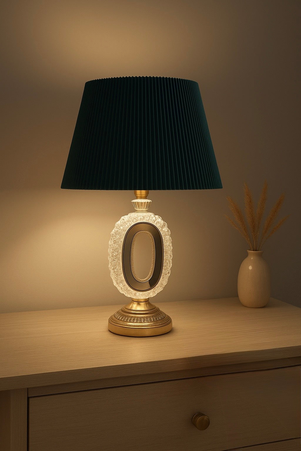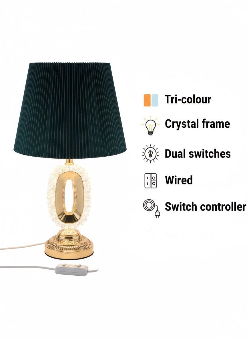 The Emerald Halo Royale Table Lamp blends deep emerald, crystal and antique gold into a single, striking statement piece for your bedside or console. Its oval halo base softly glows against the pleated shade, creating warm, hotel‑style ambience that instantly makes any room feel richer and more refined.