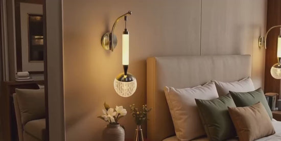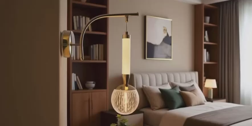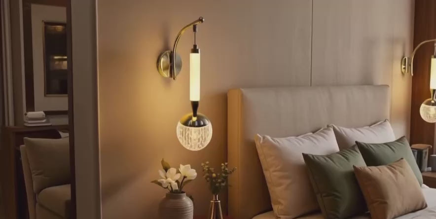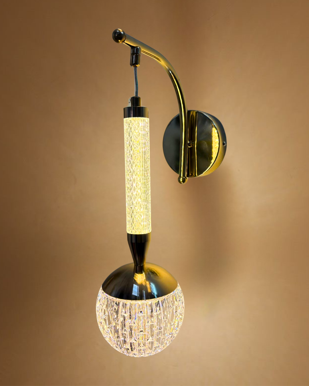 Perfect for living rooms, bedrooms, hallways, restaurants, cafés, or hotel interiors, its unique combination of a sleek golden arm and a crystal-cut illuminated globe makes it both a statement piece and a source of soft, inviting light.