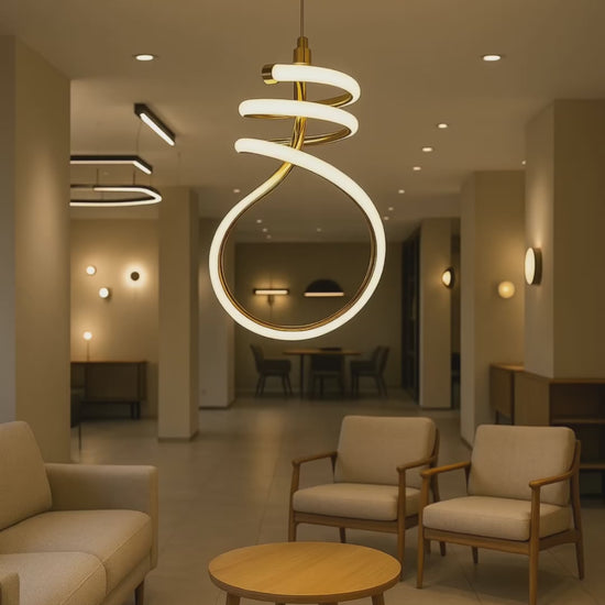 Transform your interiors with the elegance of our modern spiral LED pendant light, designed to be the centerpiece of any room. Crafted with a striking gold finish and artistic looped design, this pendant seamlessly blends luxury and contemporary style.