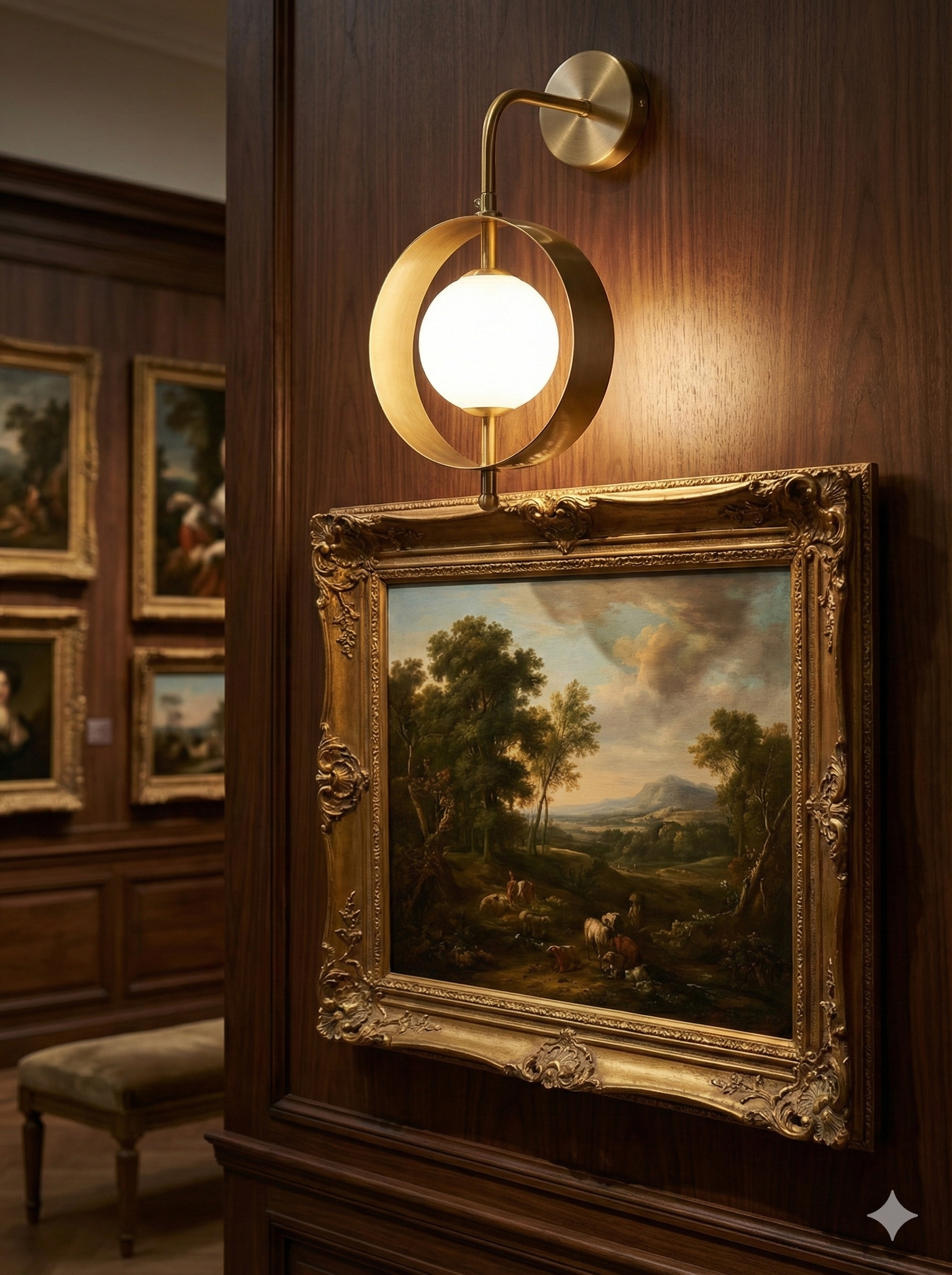 - Turn every switch-on into a “wow” moment. This gold ring wall light is not just a fixture; it is the piece that makes your bedroom, living room or entryway feel like a luxury hotel suite. The glowing opal sphere floats inside a brushed gold halo, throwing a warm, even light that flatters everything around it – from your headboard and artwork to your furniture and fabrics. Visitors notice it immediately; you feel the difference every single evening.
